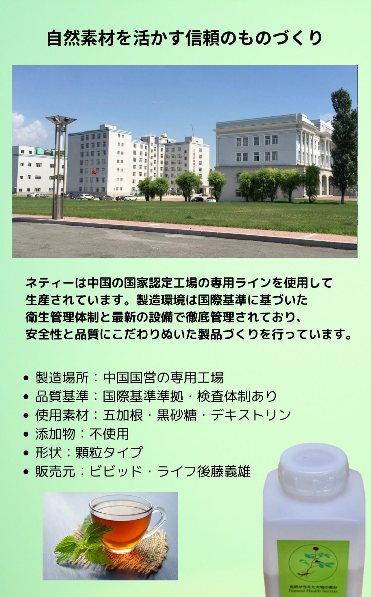 ネティーの原料、自然の力をそのままに