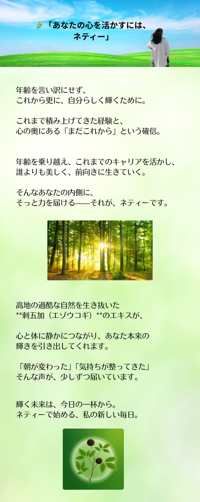 ネティーのような、自然の中で育った本物の植物の力が、