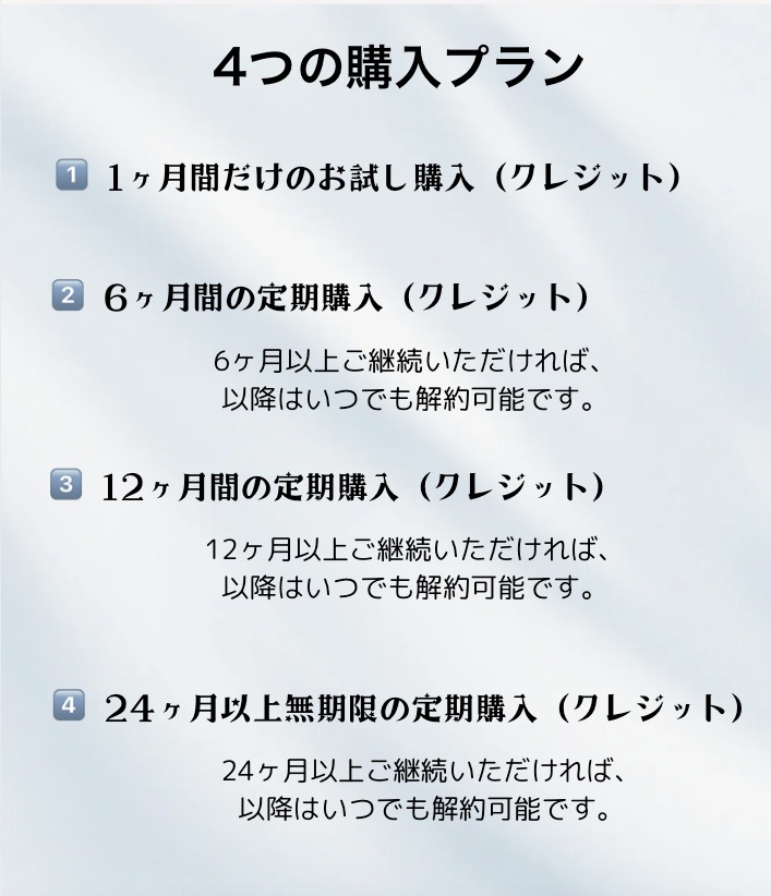 どんな購入スタイルにも対応しています。あなたに合った続け方をお選びください。